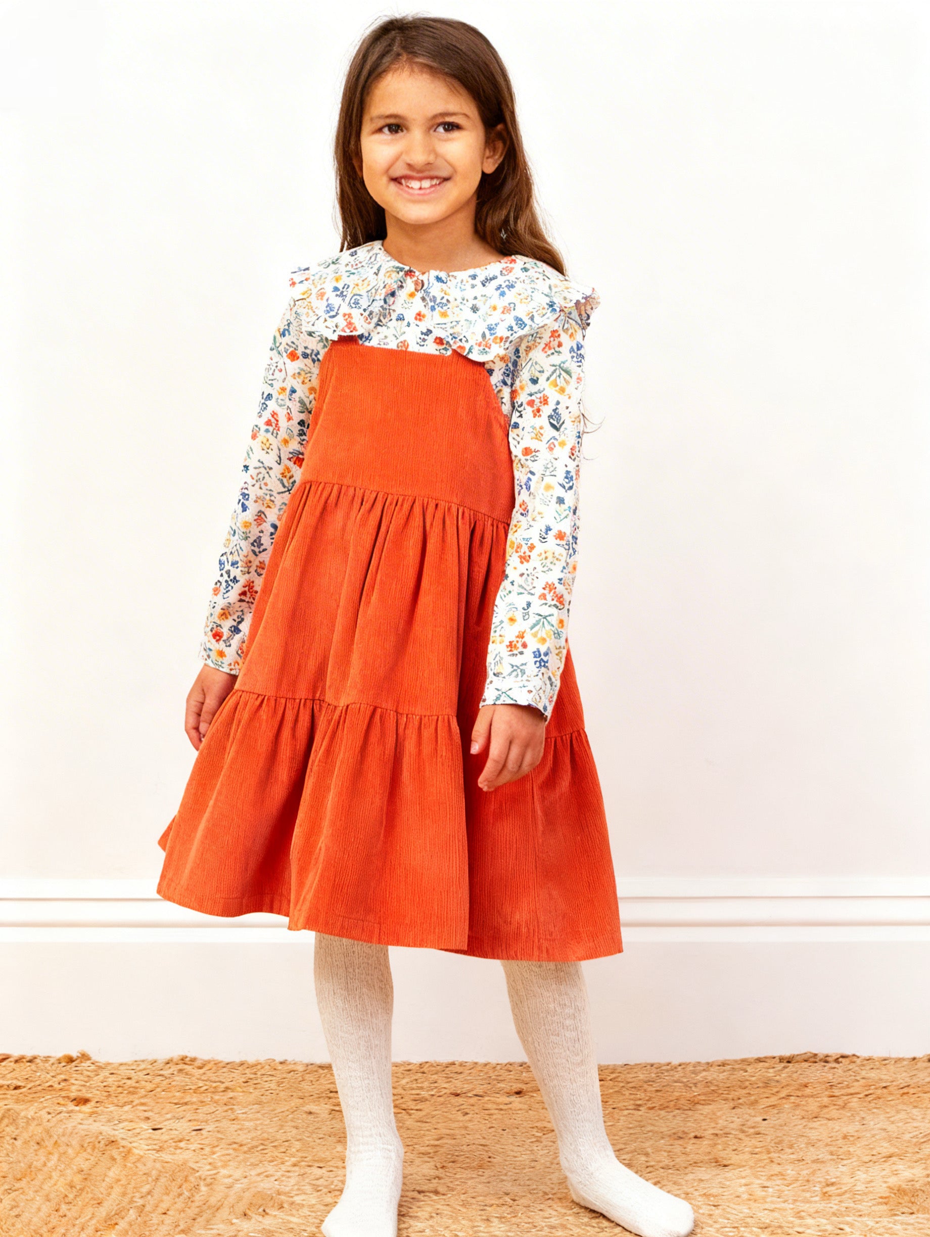 A classic style with wow factor, this little burnt orange pinafore looks great paired with many of this season’s tops and blouses, especially ourFairy Flowersblouse.
